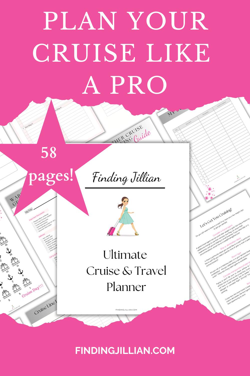 The ultimate Cruise & Travel Planner is a 58- page digital download. It's packed with planning templates, tips, and checklists to make planning your next trip a breeze.